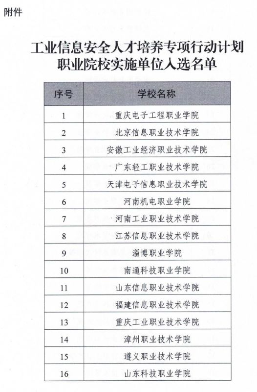 【人才培养】我院以全国第三名入围工业信息安全人才培养专项行动计划职业院校实施单位