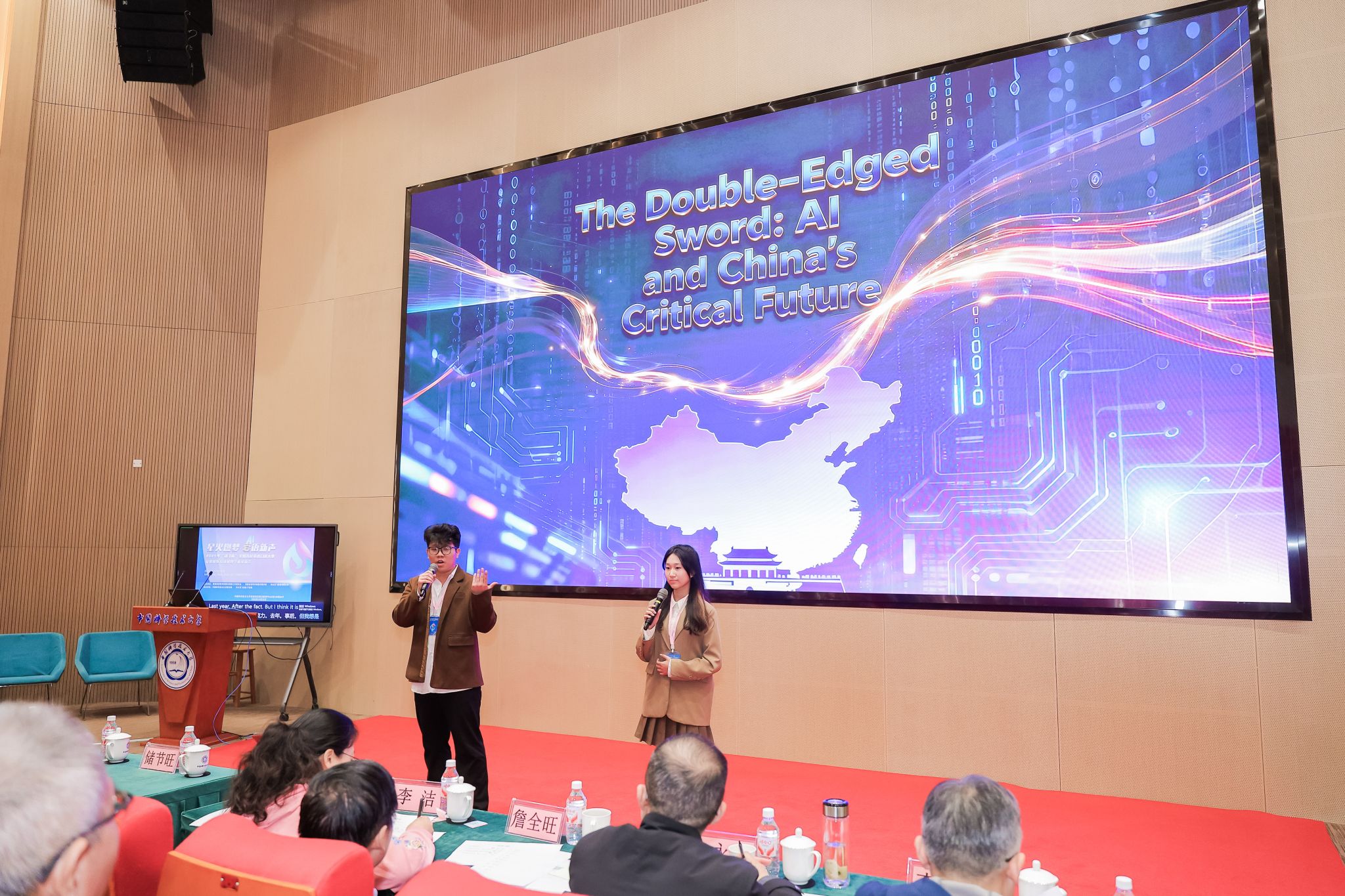 大赛由安徽省高等学校图书情报工作委员会、安徽省高等学校数字图书馆、科大讯飞股份有限公司联合主办。本届赛事以“星火燃梦·AI语新声”为主题,共吸引安徽省60所本专科院校逾7000名大学生参与其中。在指导教师的精心辅导下,鲍淑婷、罗尚宇两位学子沉着应对,以饱满的热情、积极的态度、标准的发音、精彩的内容圆满完成了决赛演讲环节,展现出扎实的英语功底与出色的现场表达能力,荣获安徽赛区决赛一等奖。