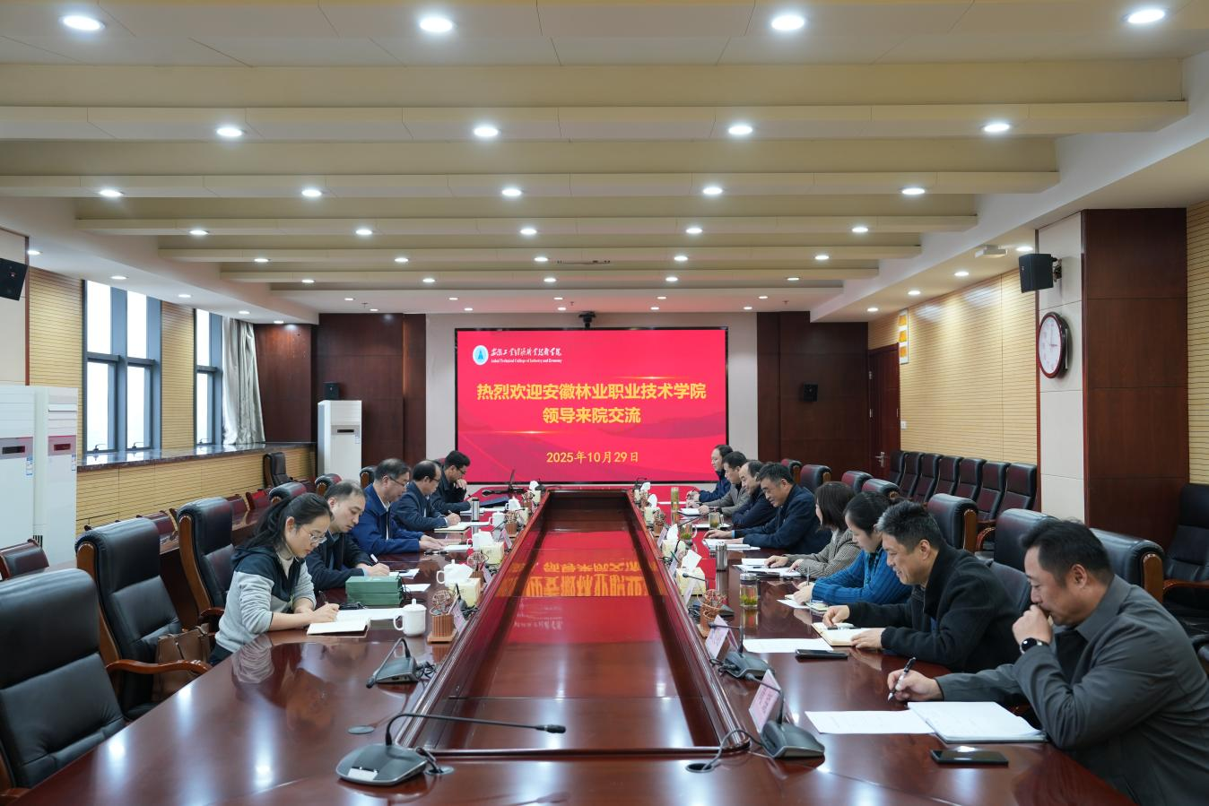 10月29日下午,安徽林业职业技术学院党委书记林高兴一行5人到我院调研交流座谈,院党委书记许卫主持座谈会,党委副书记周和平,党委委员、副院长黄雪飞,学院有关部门负责人参加座谈。
