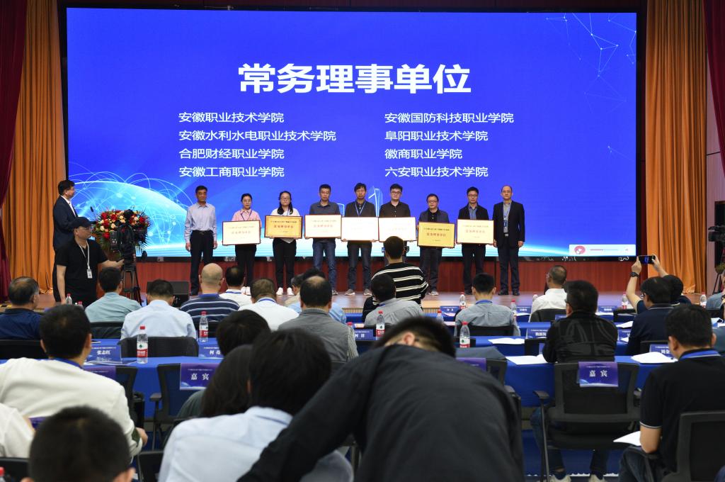 安徽省地矿局一级巡视员侯其标、安徽省教育厅高等教育处二级调研员檀俊、安徽工业经济职业技术学院党委书记许卫、安徽大学教务处副处长鲍炎红、北京弘象科技有限公司副总经理韩晓峰出席大会并致辞,原教育部职业教育与成人教育司二级巡视员刘杰通过视频致辞,安徽工业经济职业技术学院党委副书记、院长刘仁金主持第一阶段大会。