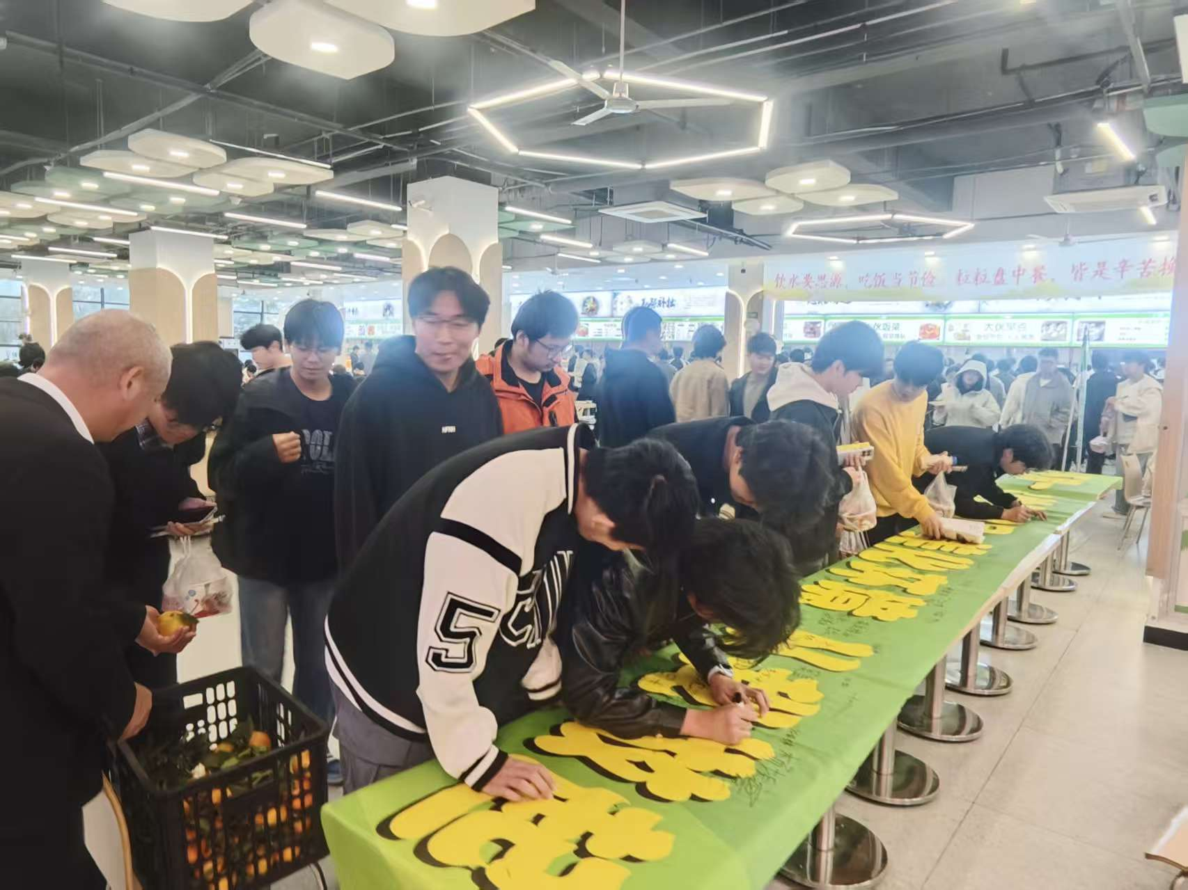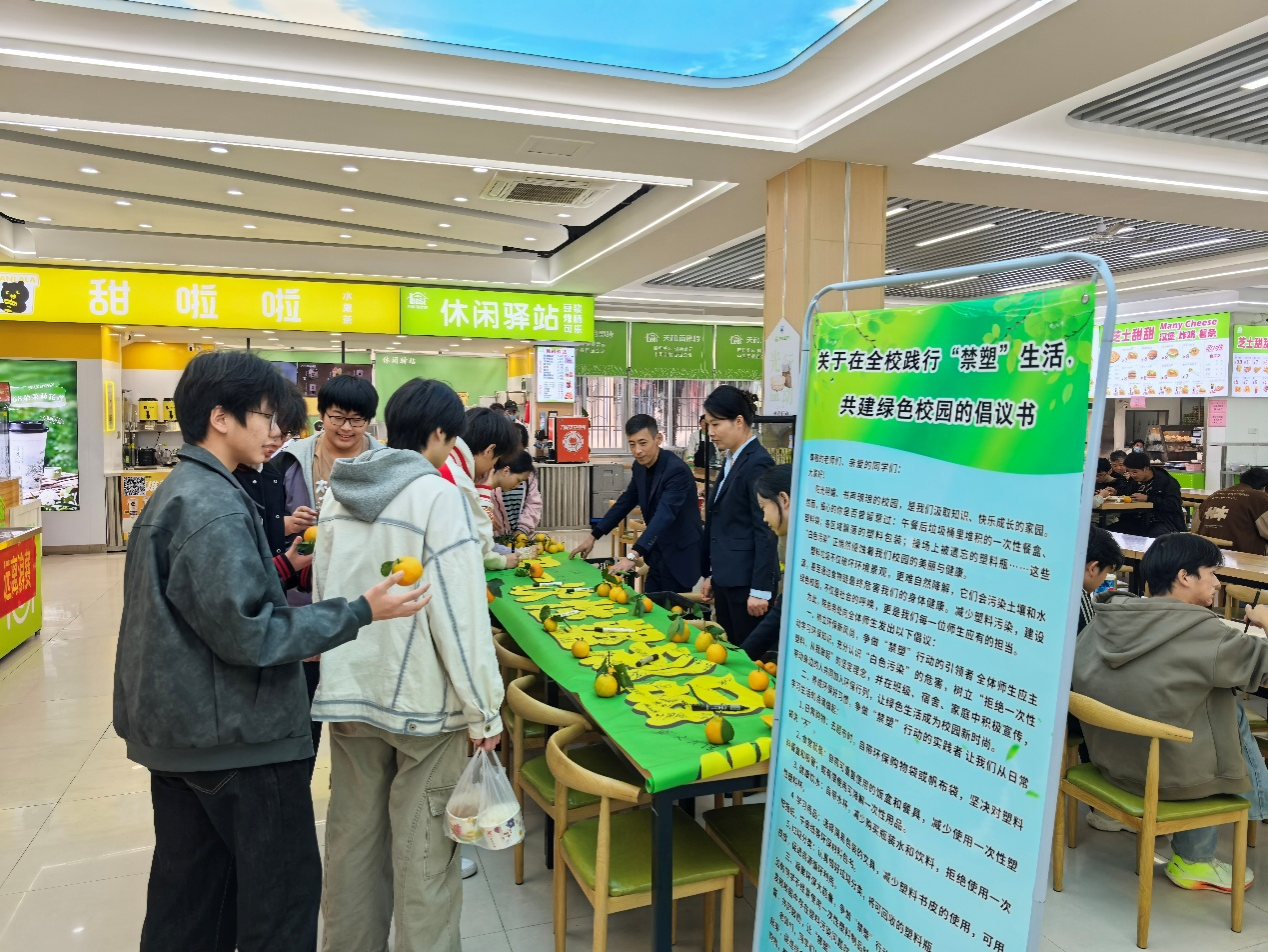 11月5日,安徽工业经济职业技术学院四个食堂里人头攒动,氛围热烈,一场主题为“践行‘禁塑’生活,共建绿色校园”的倡议签名活动顺利举行。活动由学院总务处发起,旨在凝聚师生共识,将绿色环保理念转化为日常行动。
