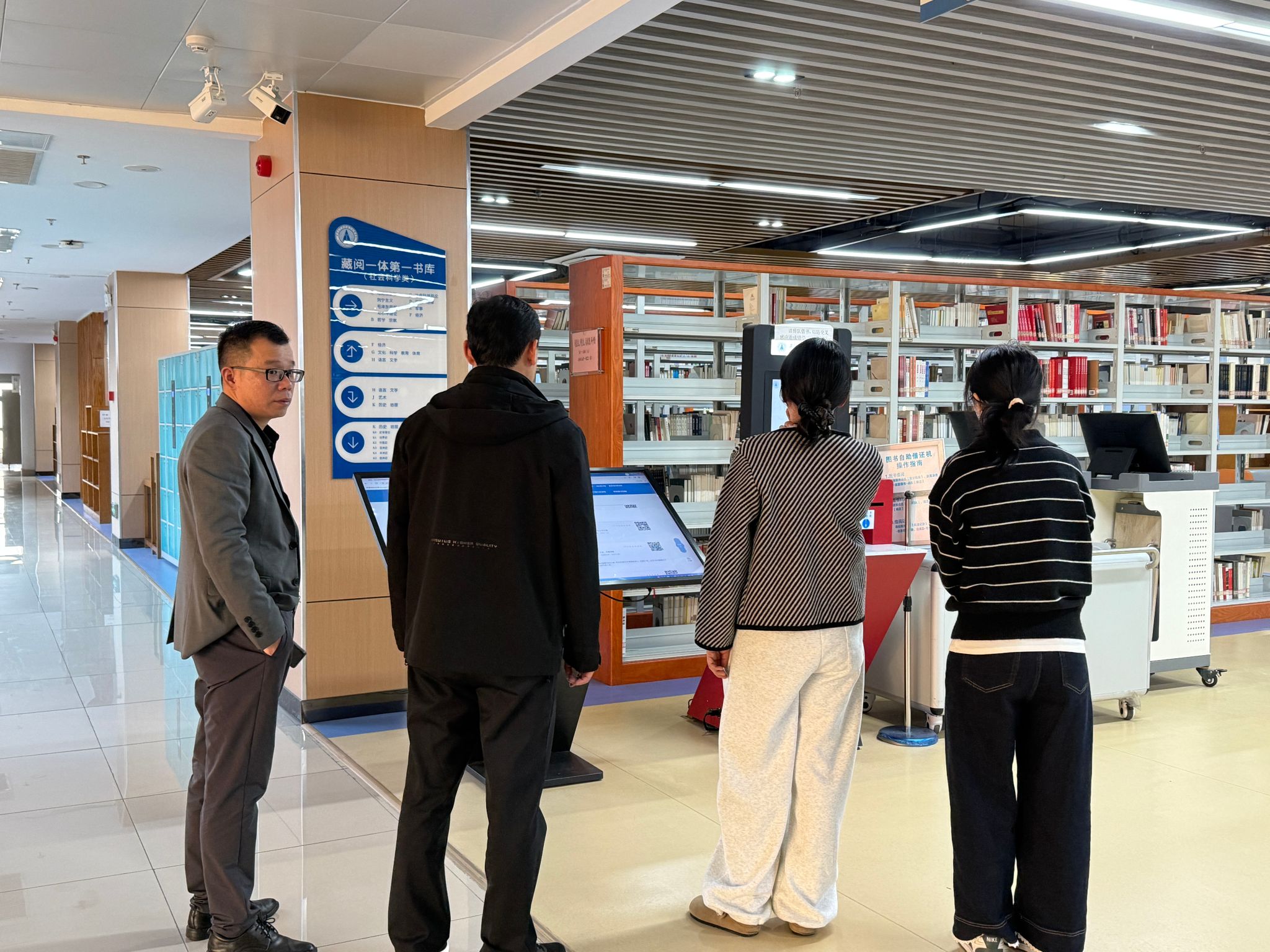 在图书馆负责人陪同下,孙刚一行实地参观了学院图书馆各楼层阅览区、电子阅览室、密集书库及学术报告厅等场地设施。他们边走边看,不时驻足询问,对学院图书馆的空间布局、设施配置以及浓郁的阅读学习氛围给予了充分肯定。