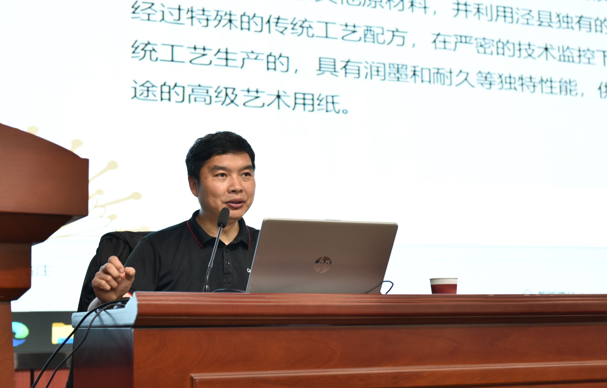 刘靖老师深入浅出地介绍了纸笺的起源与发展历程。从古代劳动人民为满足实用、审美和保存等需求而诞生的纸张再加工技艺,到近现代纸史研究中对传统手工造纸体系纸张加工类别的探讨,纸笺加工技艺穿透千年历史,直到2009年才正式出现在第二批国家级非物质文化遗产代表作目录的公示名单中,安徽省掇英轩书画用品有限公司与有荣焉,成为这项宝贵技艺的保护单位。